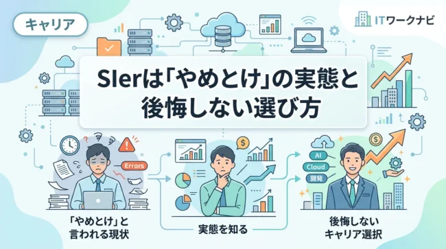 - SES(システムエンジニアリングサービス): 客先に常駐して働く形態。多様な現場を経験できるメリットがある反面、案件ガチャ(当たり外れ)があり、帰属意識が薄くなりやすい。