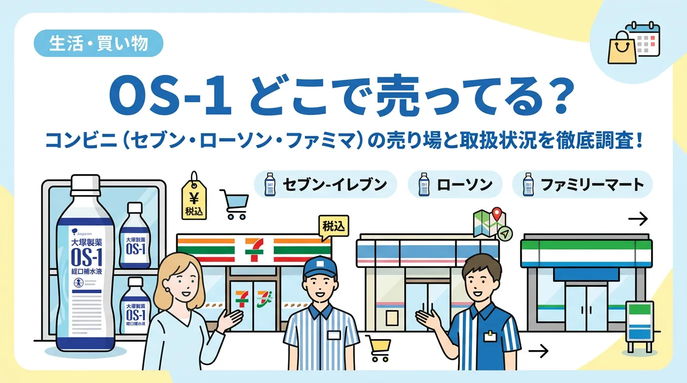 本記事では、セブン-イレブン、ローソン、ファミリーマートといった主要コンビニにおけるOS-1の取扱状況や、店内のどの売り場を探すべきか、さらには購入時の注意点について詳しく解説します。