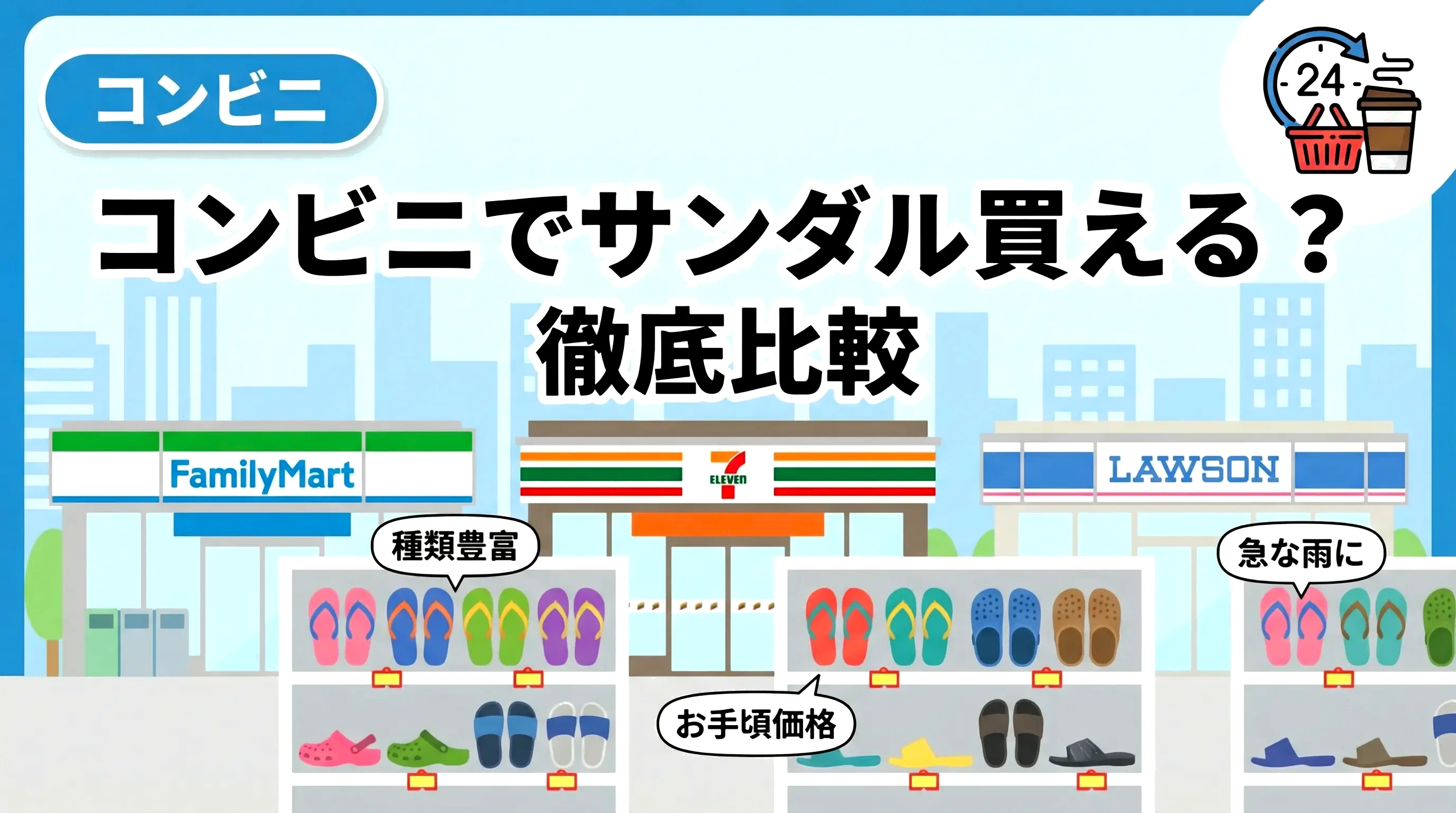 コンビニにサンダルは売ってる?ファミマ・セブン・ローソンの種類や値段を徹底比較